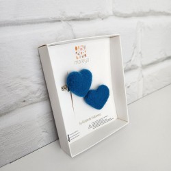 Gümüş veya altın renklerinde toka üzerine yün keçe kalp motifi kullanılmıştır.